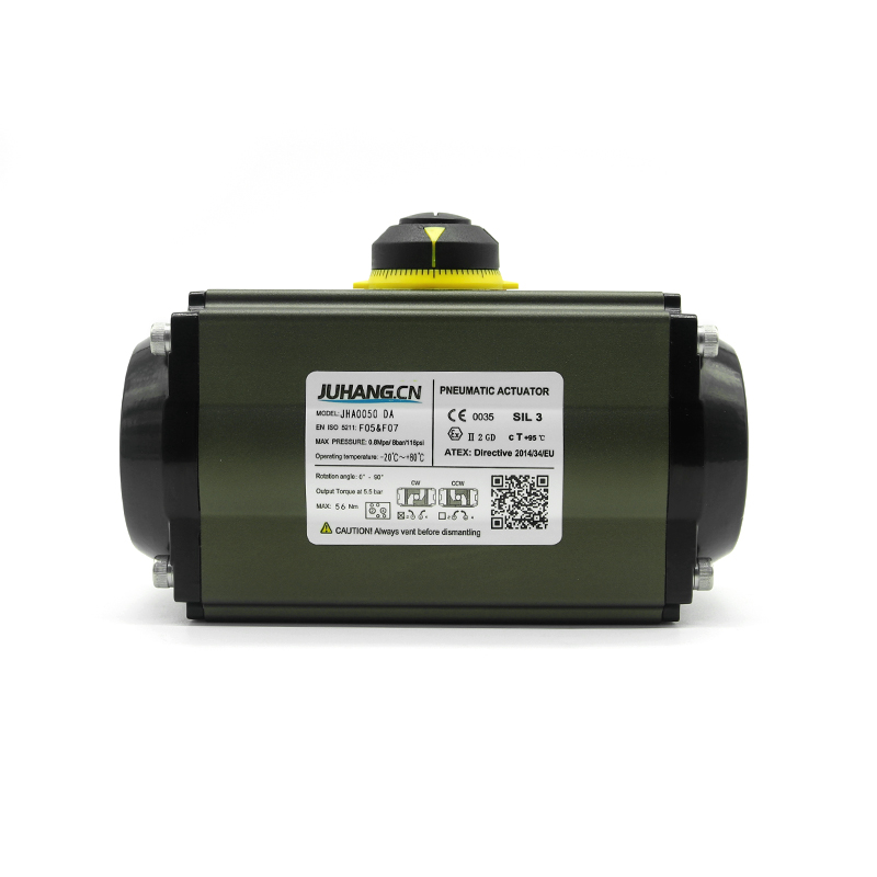 Rak dan Pinion Pneumatic Actuator Double Acting JHA0050DA, Kualiti Tinggi, Geseran Rendah, Kehidupan Panjang, Masa Beralih Hingga Lebih Dari 1 Juta Kali, Kestabilan Tinggi.