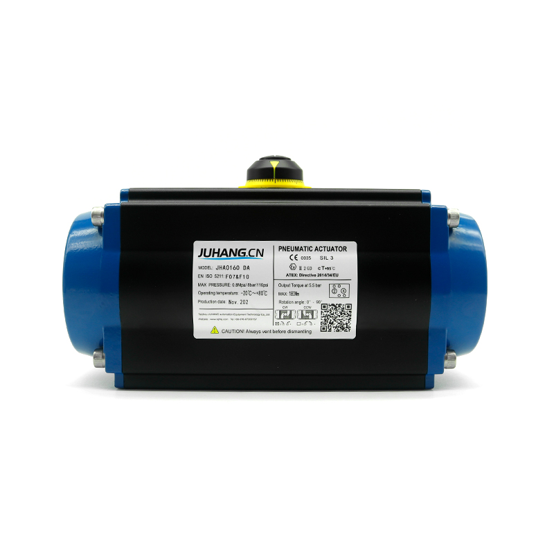 Rak dan Pinion Pneumatic Actuator Double Acting JHA0160DA, berkualiti tinggi, geseran rendah, jangka hayat, masa bertukar adalah sehingga lebih daripada 1 juta kali, kestabilan yang tinggi.
